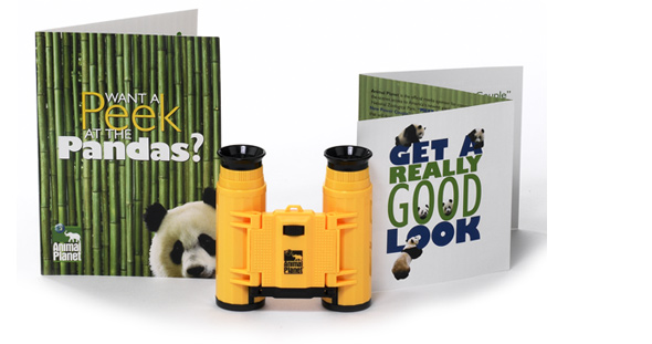 To celebrate the arrival of the giant pandas at the National Zoo, Discovery held a “Private Panda Extravaganza” featuring the world premiere of Animal Planet’s “Meet the Pandas” program and special behind-the-scenes zoo tours to visit the pandas. The invitation package included logo binoculars that gave guests a closer view of the pandas at play. Response was so positive—around 1,500 for a mailing of 3,000—that two additional screenings of the program were required.